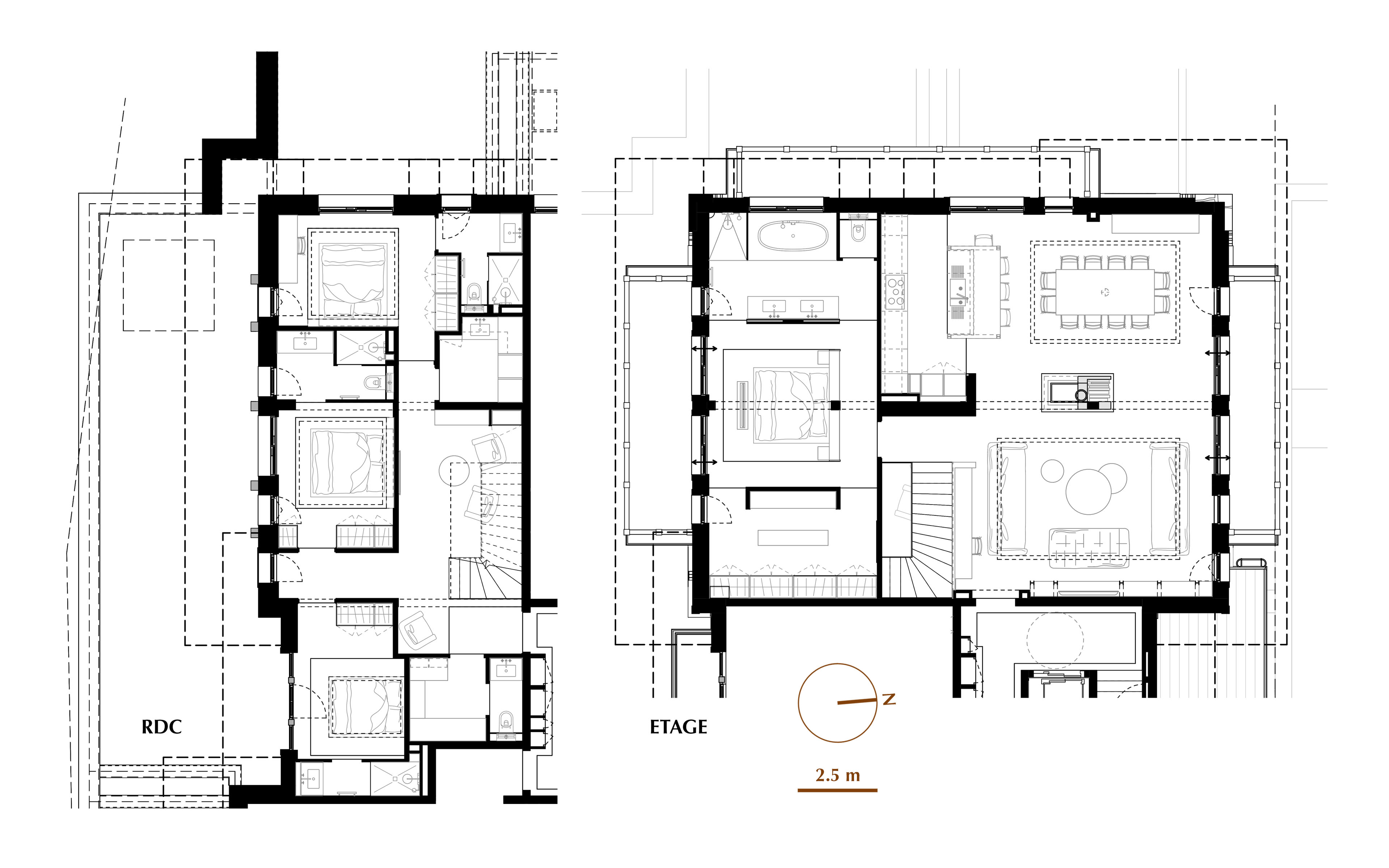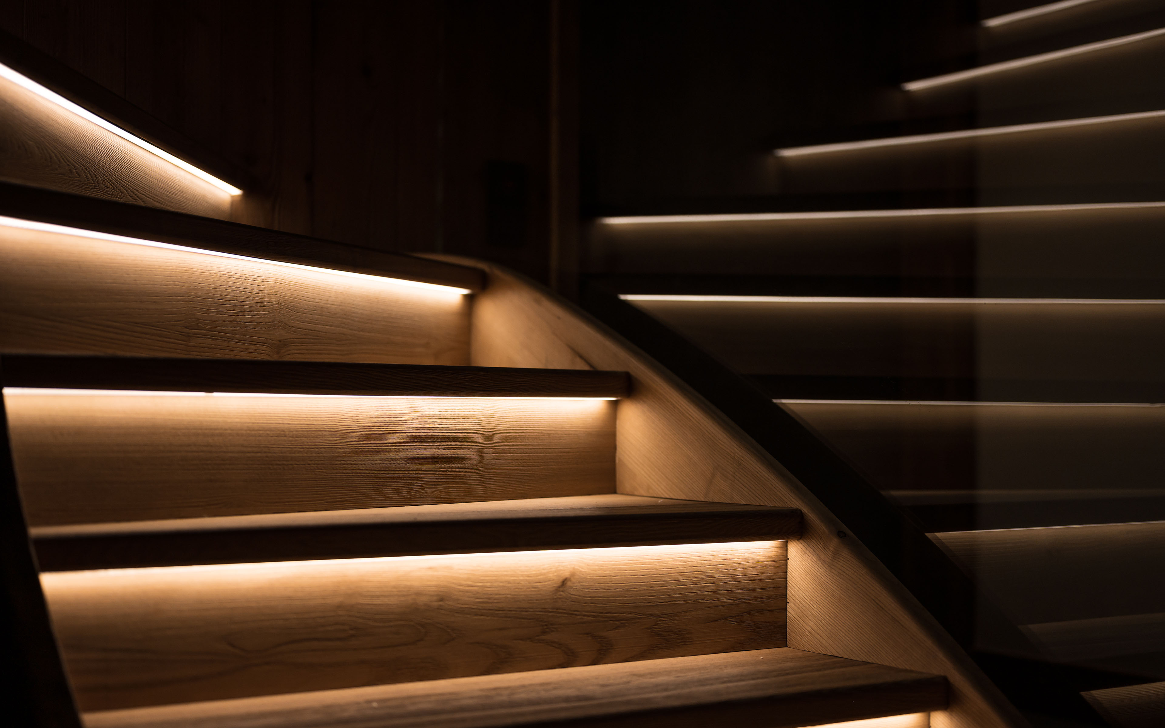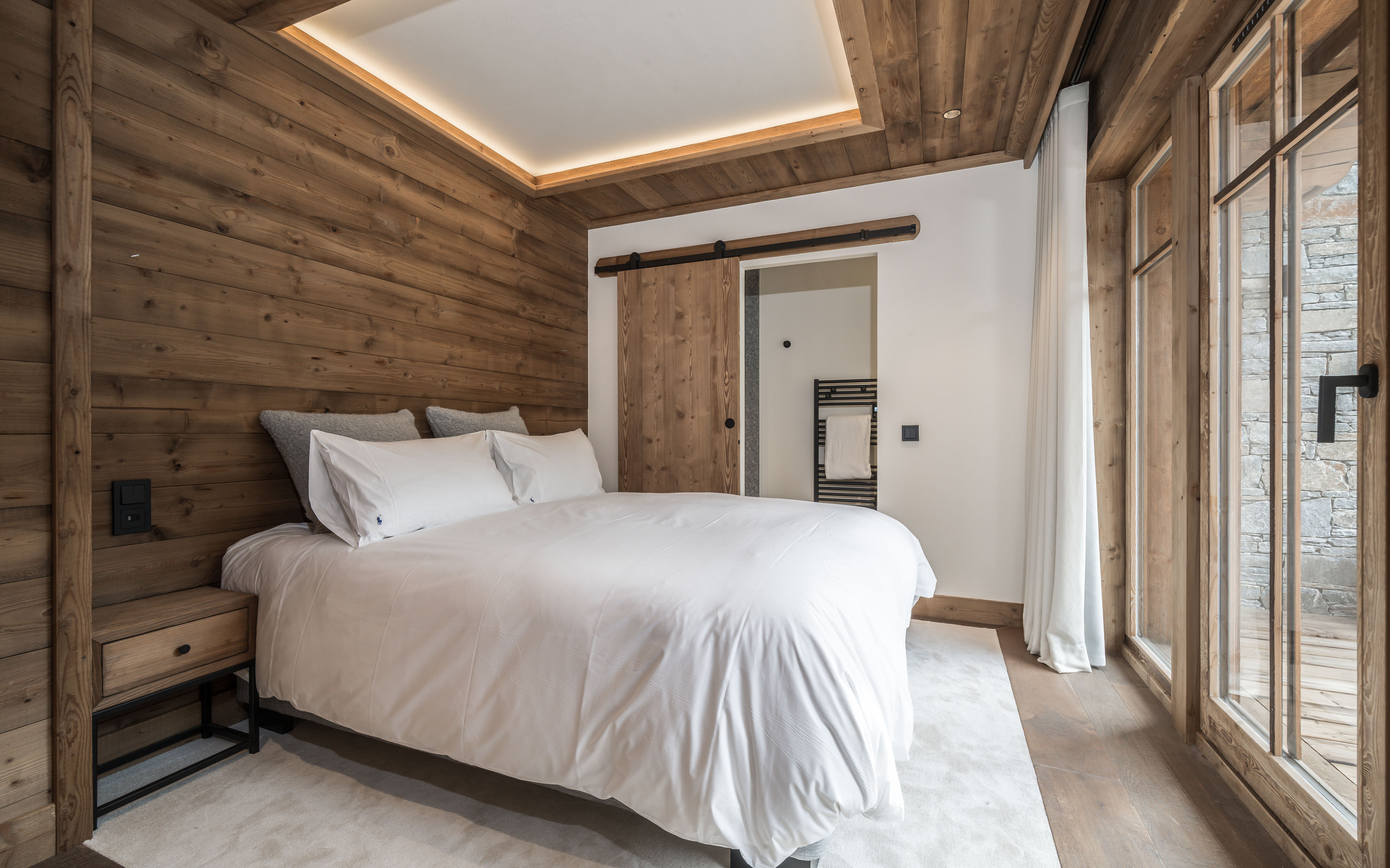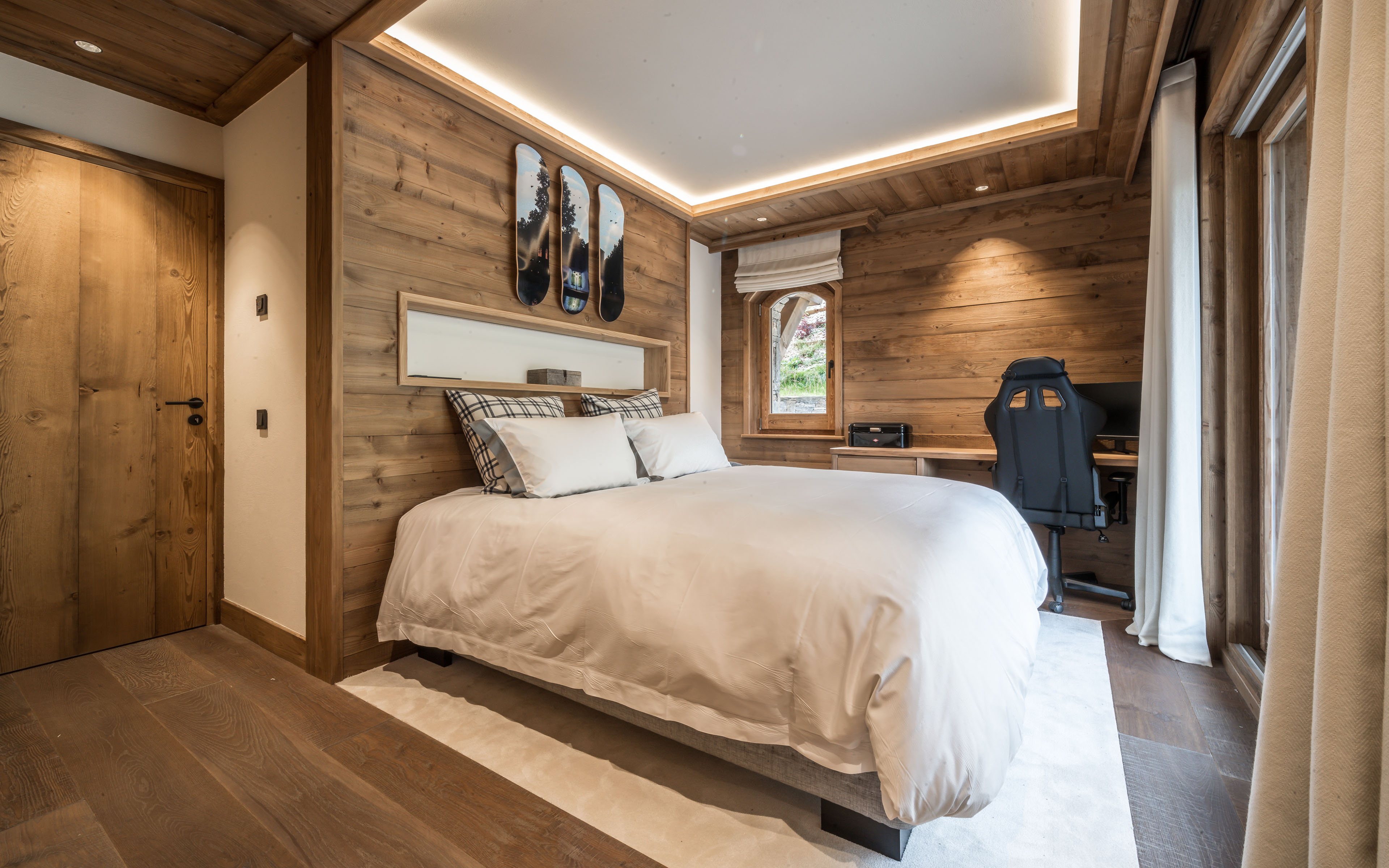 Dans la copropriété des Marmottons à Courchevel, cet appartement a été réalisé entièrement sur mesure. Que ce soit l’escalier avec éclairage intégré et verre pincé, les multiples bibliothèques, les salles de bains en pierre de luserne, la cuisine en marbre et métal, le client a exigé une cohérence des espaces/matériaux et une qualité de finition poussée pour ce beau duplex. La décoration a été confiée à Home&U.